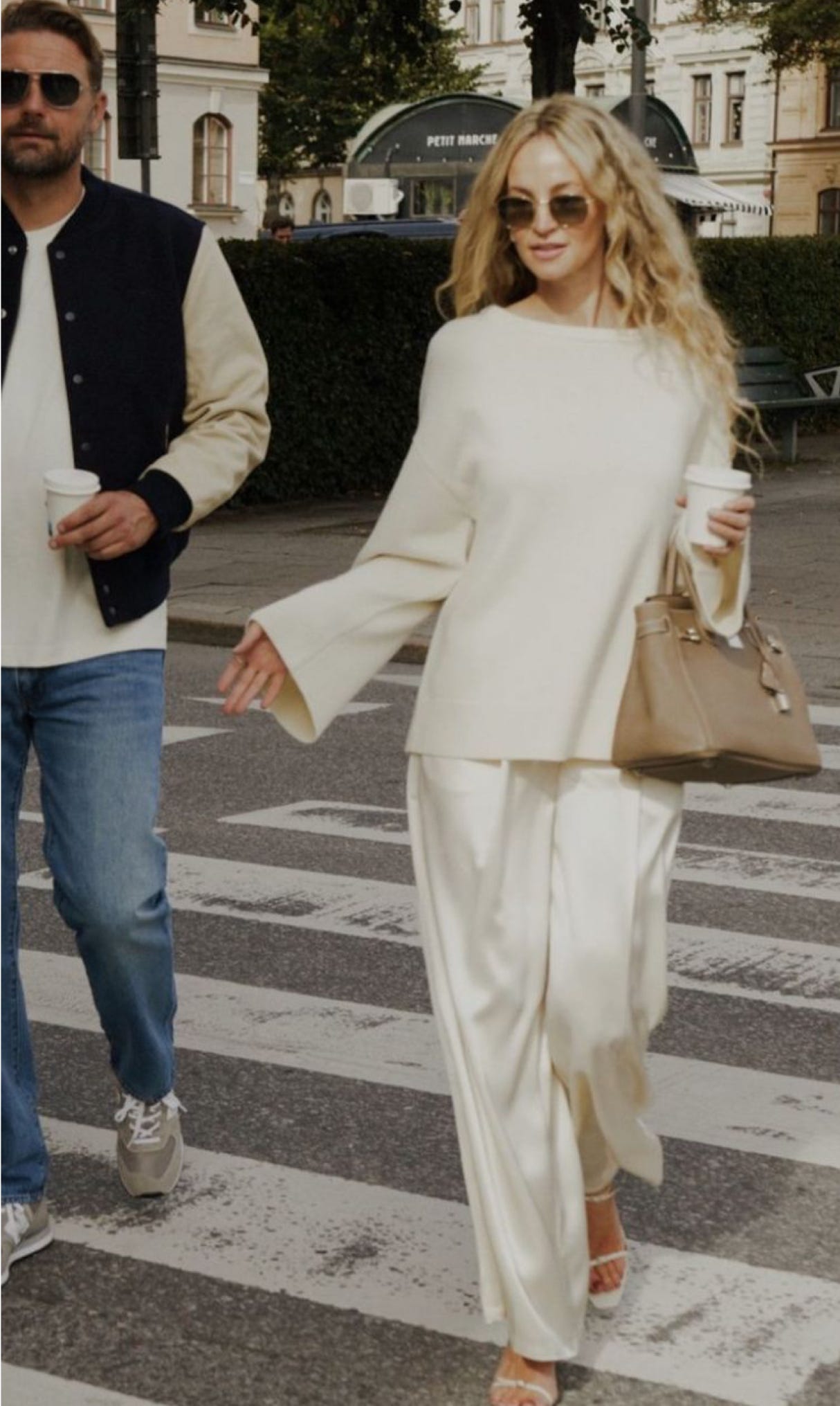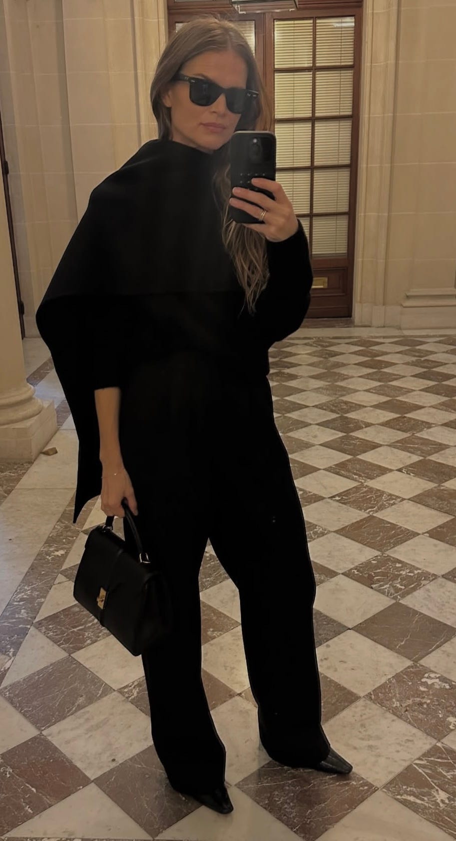 Carolyn in ivory with silk pants or Calvin, dying over this bag and love wire frames (I actually prefer his so linked those).